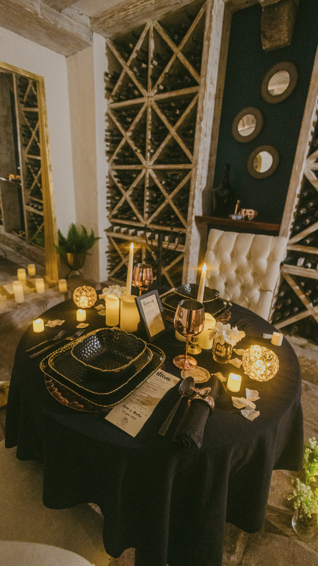 - Decoración romántica: Cristalería, toques florales, velas led.