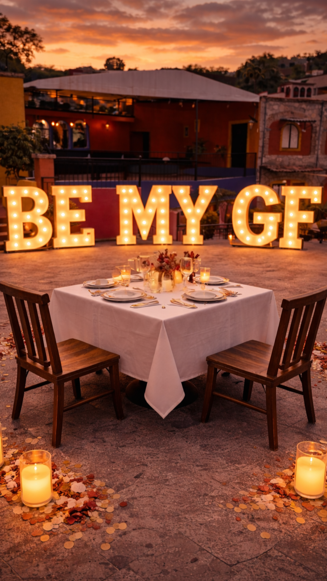 - Letras gigantes a elegir: MARRY ME // TE AMO // BE MY GF.