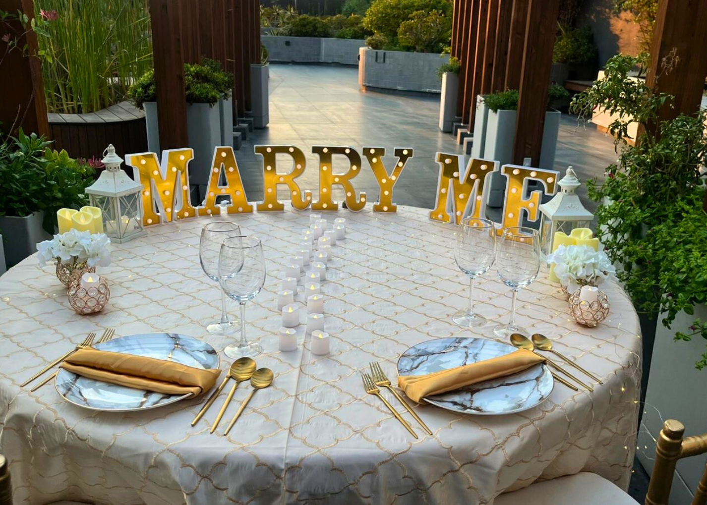 - Letras luminosas de 30 cm: MARRY ME