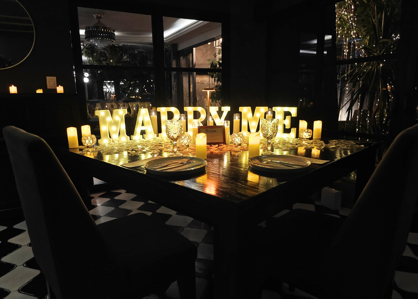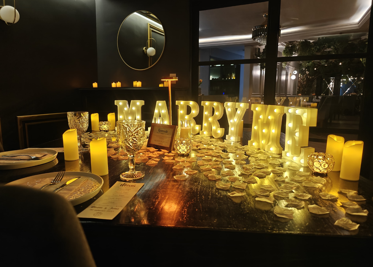 - Letras gigantes a elegir: MARRY ME // TE AMO.