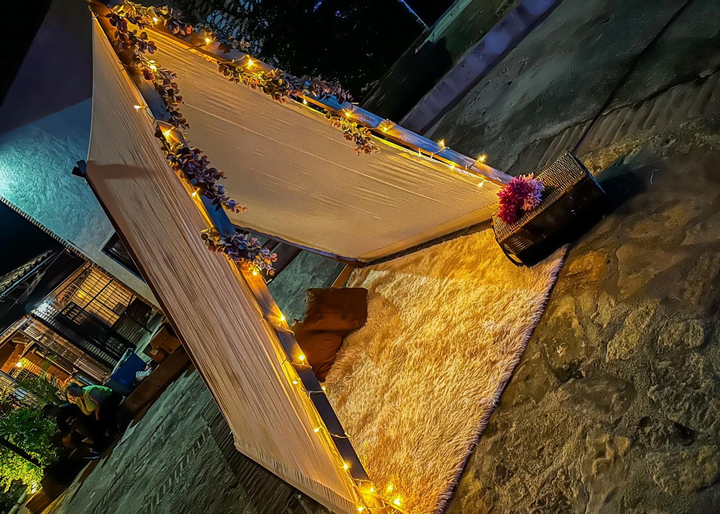 "El teepee crea un efecto sorpresa único: la entrada se siente como descubrir un lugar secreto solo para ustedes dos."